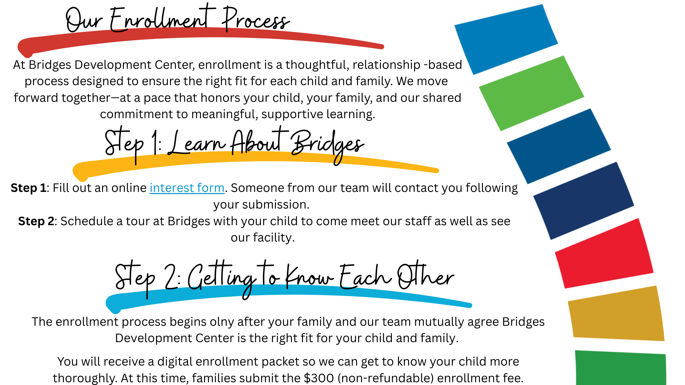 Bridges Development Center is a registered 501(c)3 tax-exempt organization, EIN #93-2430975.