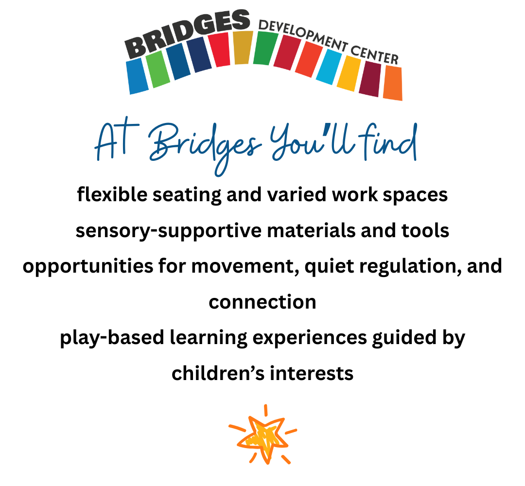 Our program is housed within Adat Shalom Synagogue, though Bridges Development Center operates as a non-religious, inclusive community organization and welcomes families of all faiths and identities.